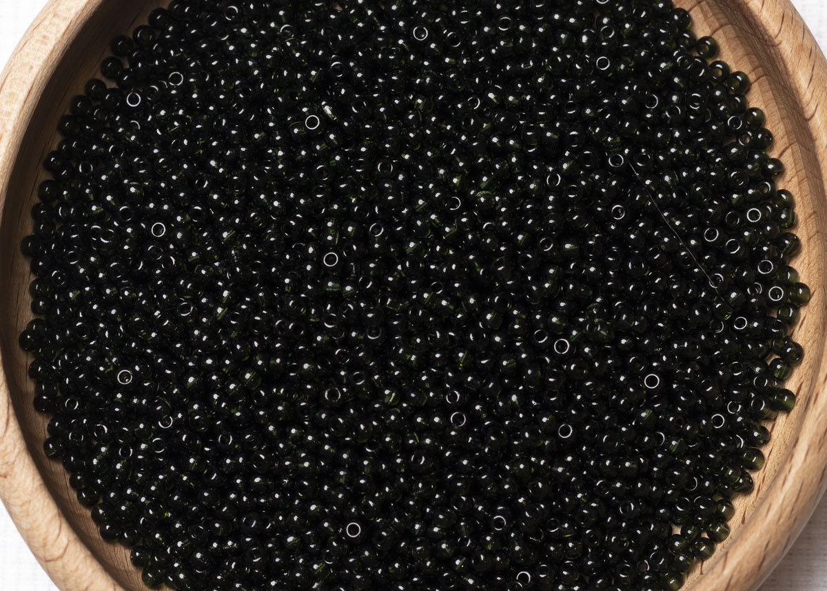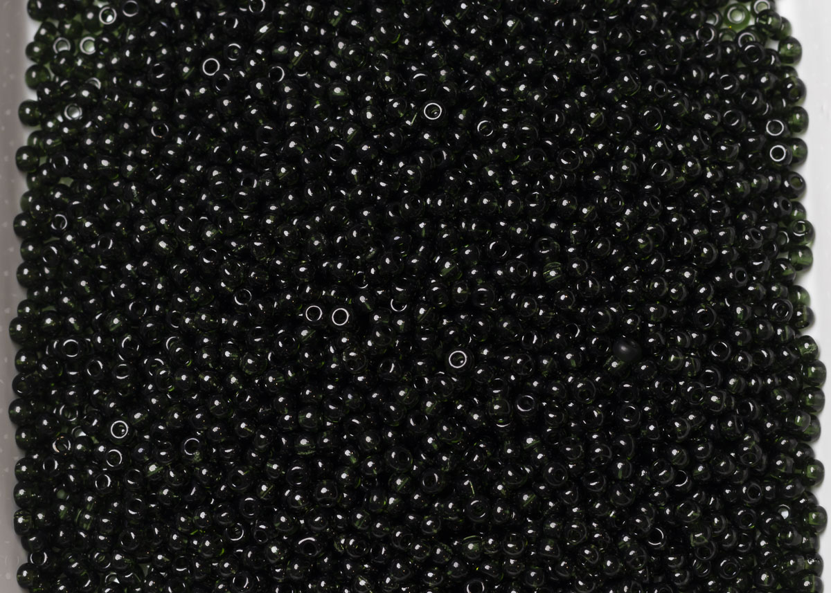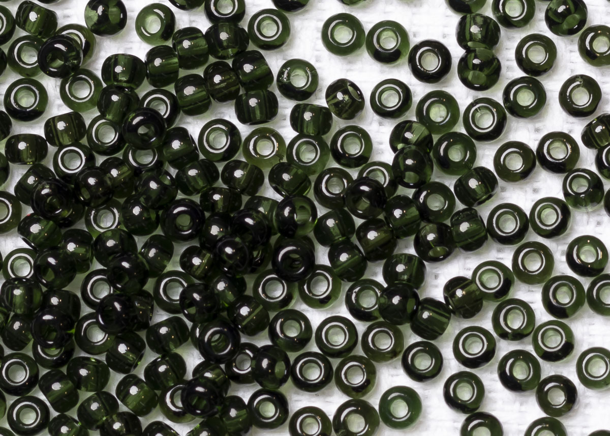 бисер чешский,фирмы "Яблонекс", размер 8\0, цвет темно-зеленый прозрачный, цена за 1 упаковку(50 гр).